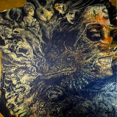 Yes — Self Portrait in Shades of Bipolar captures much of what I experience internally. It reflects the complexity, beauty, distortion, and strength that are all part of living with bipolar disorder. The haunting faces and layered textures symbolize introspection and the weight of perception — both internal and external. The dragon-like figure woven into the chaos represents the power of transformation and resilience. This piece is as much about how others see me as it is about how I see myself — the projections, assumptions, and misunderstandings that often accompany mental health conditions. It challenges the viewer to confront those layers.